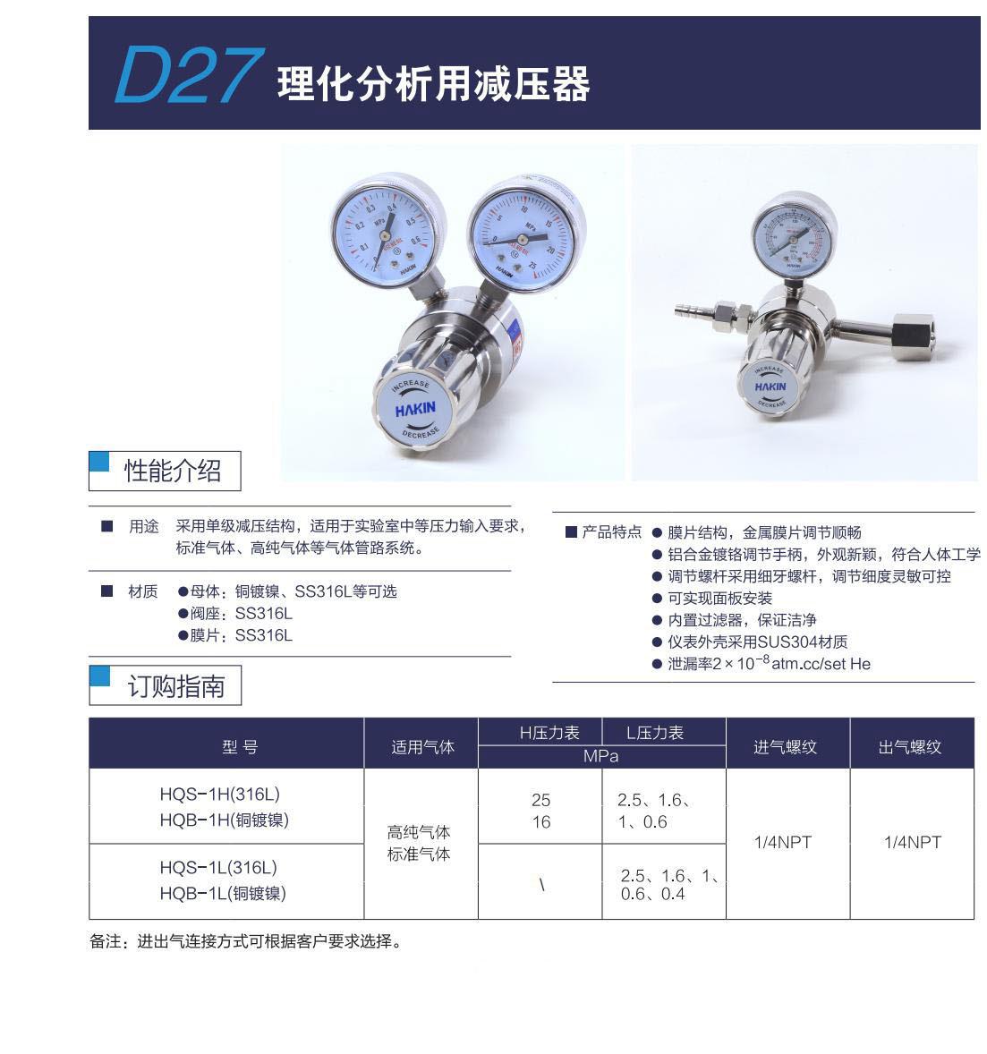 理化分析用减压器