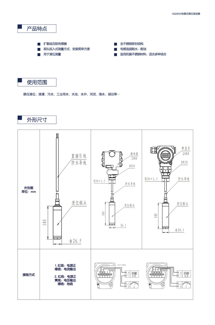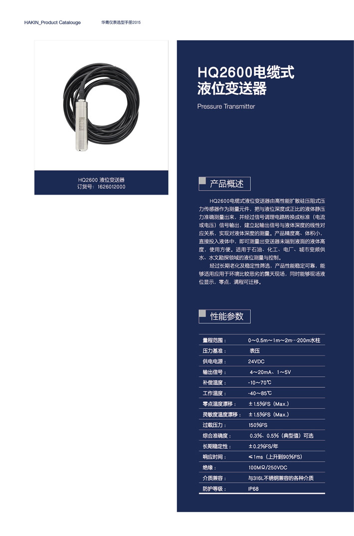 HQ2600电缆式液位变送器